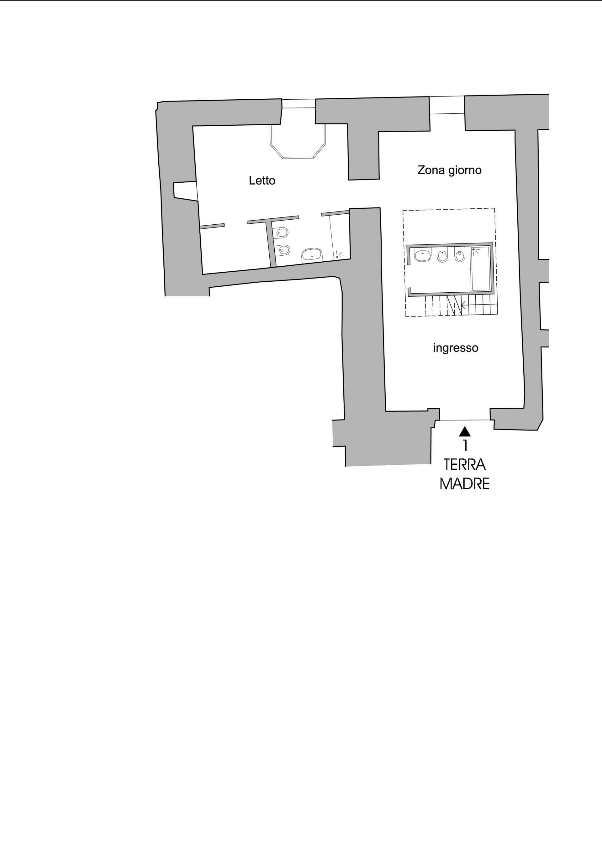 Situato al piano terra del palazzo con accesso dalla hall Terra Madre è l'appartamento più grande, ideale per una famiglia. L'appartamento di 84 mq ha al suo interno un ampia zona living openspace, soggiorno con due divani letto singoli. Nella zona living si trova il primo dei due bagni presenti nell'appartamento. Un ampia cucina dalla quale si accede attraverso pochi gradini alla camera da letto matrimoniale con bagno ensuite e cabina armadio.