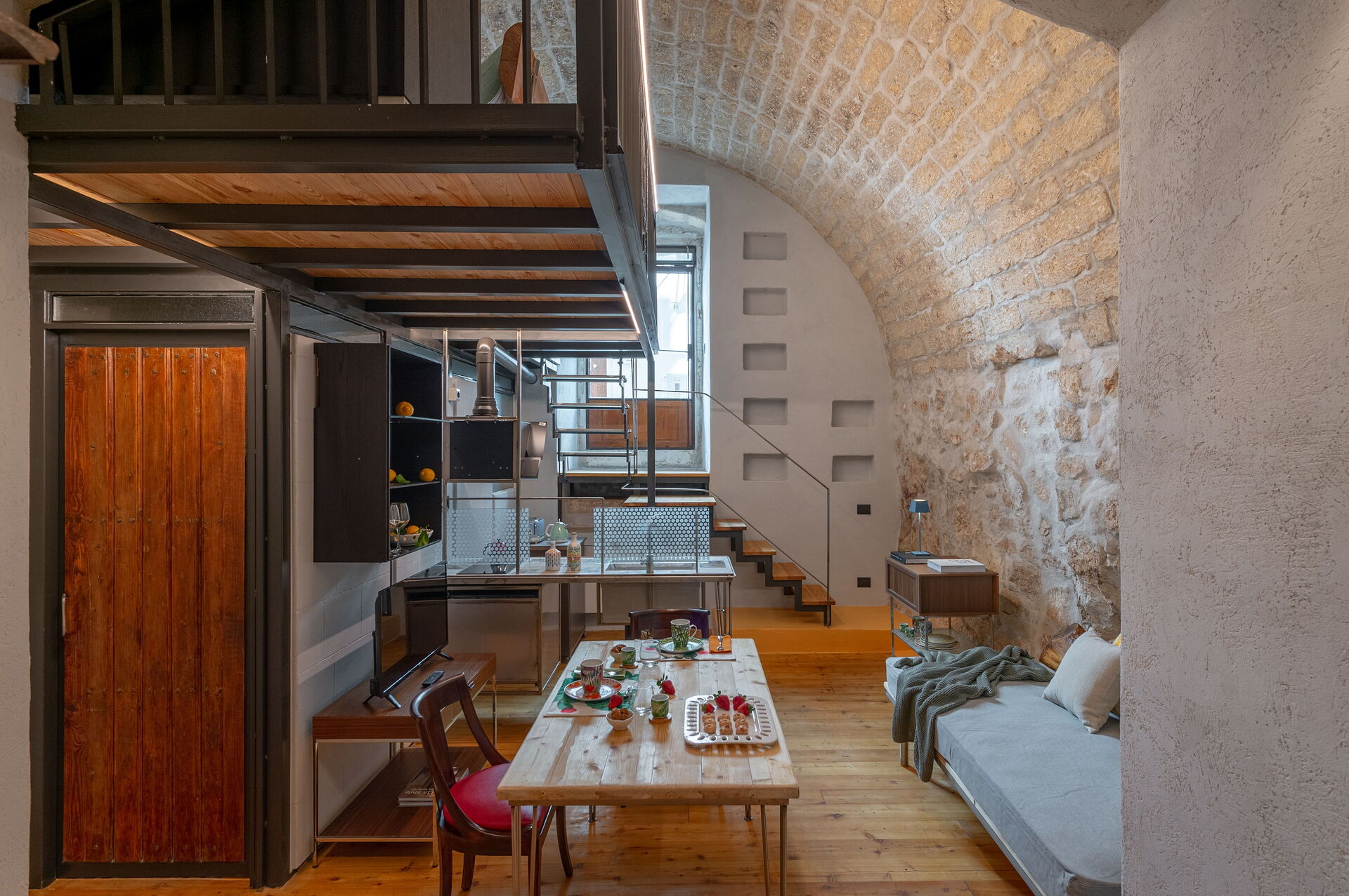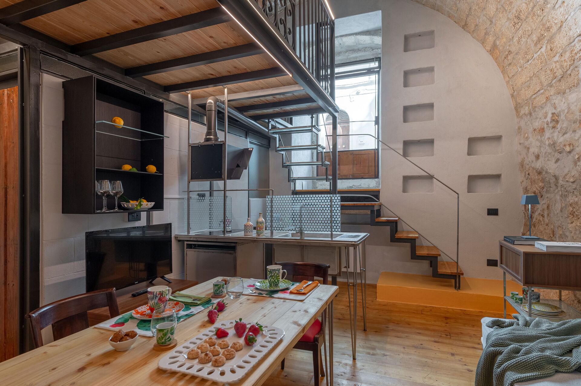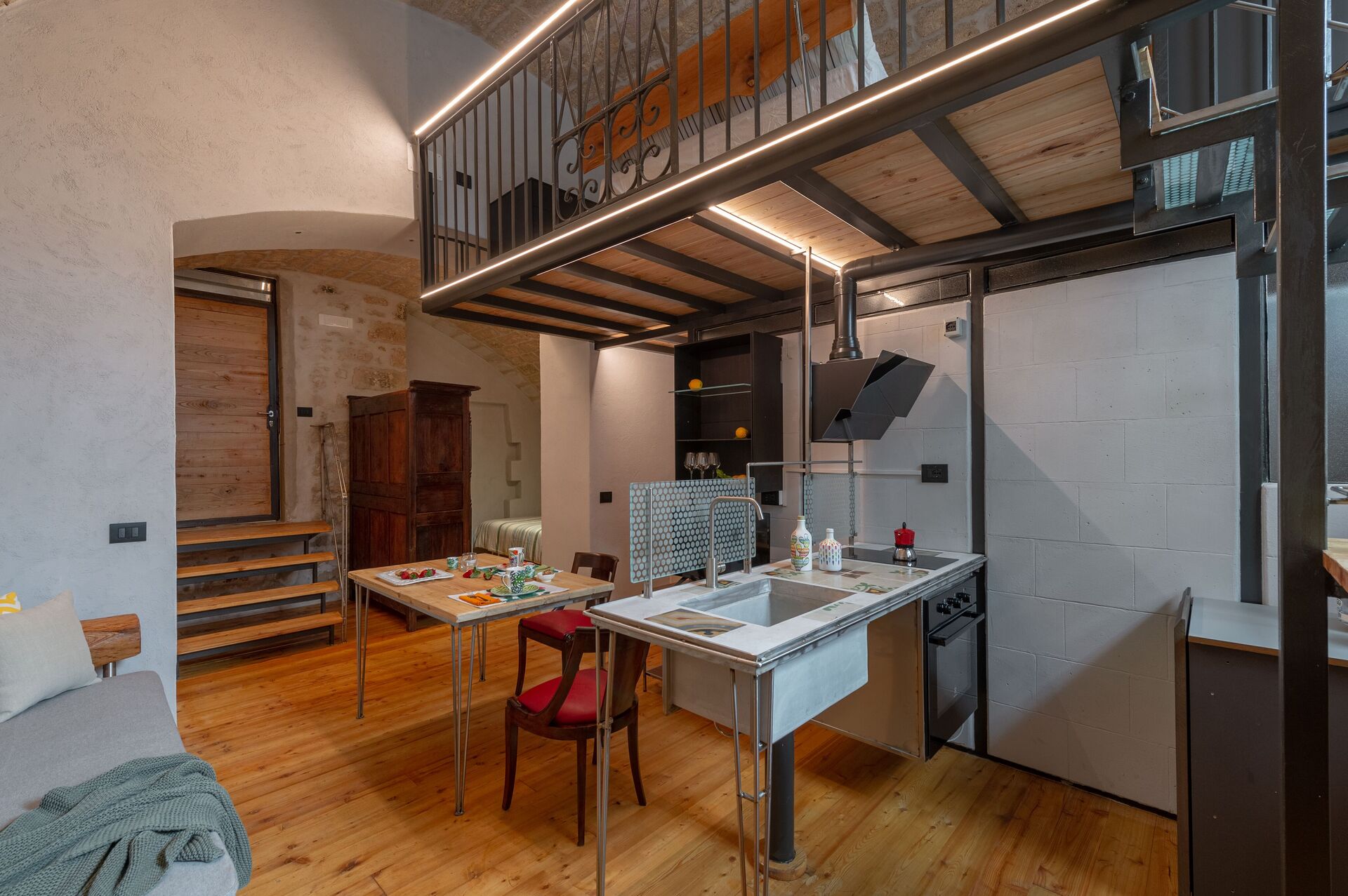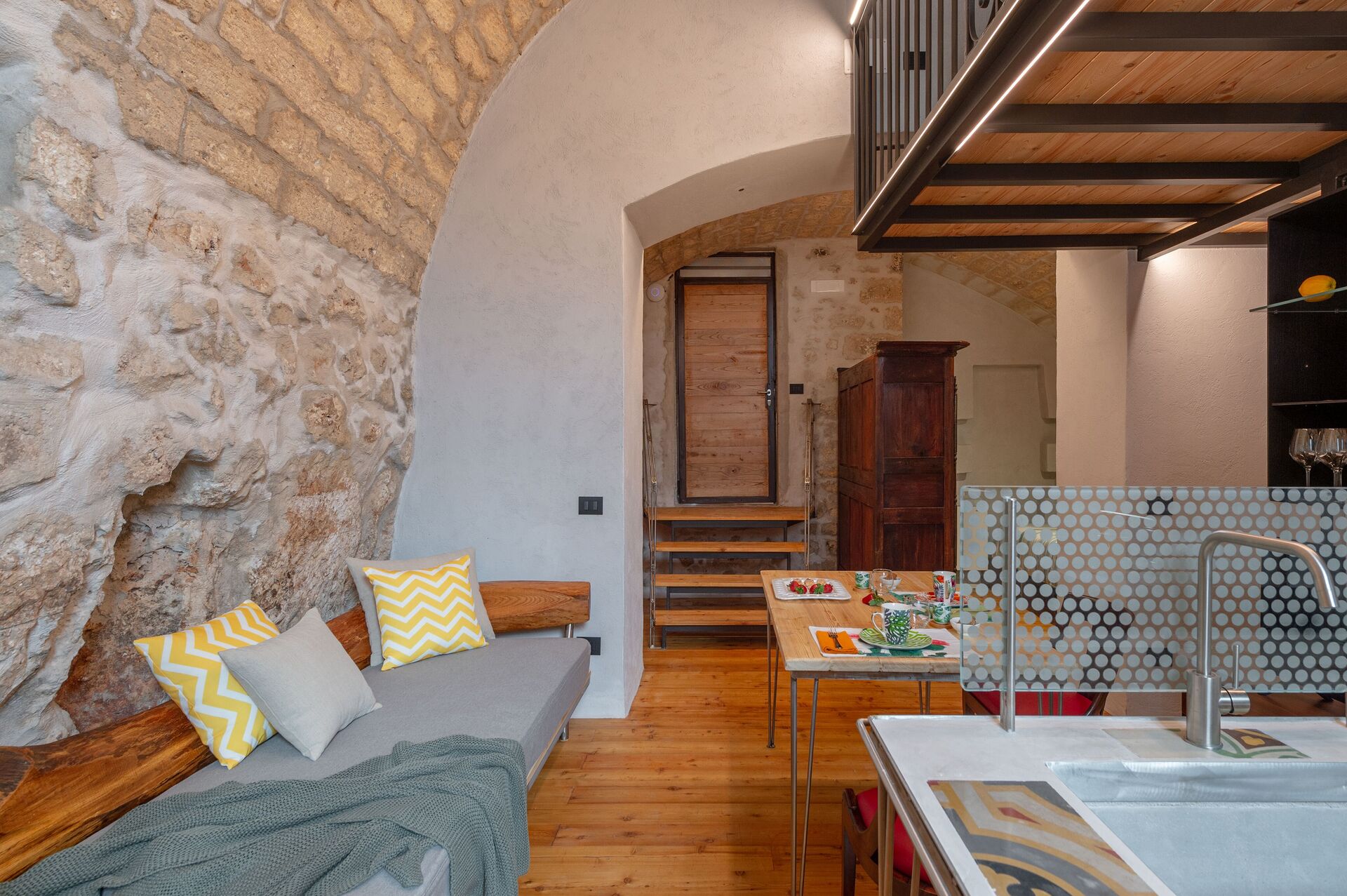 Argilla has its entrance from the raised ground floor, on its door one of the two original family's coats of arms, going down a few steps there is a large openspace where there is the living area with living room with two single sofa bed, kitchen and bathroom. Apartment is ideal for friends which would like to stay independent on their trip.