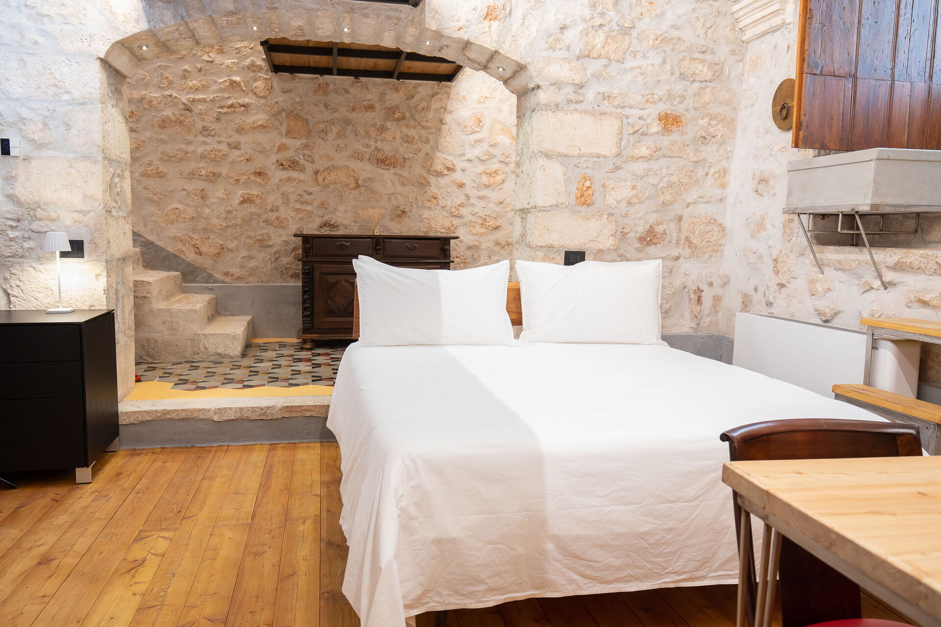 Accompanying the accommodation are common areas, such as a large reception hall, a multiservice master lounge, the ancient chapel, a relax area with bathtub and an internal courtyard. The presence of an internal lift makes it easy to use the spaces even for wheelchairs. "