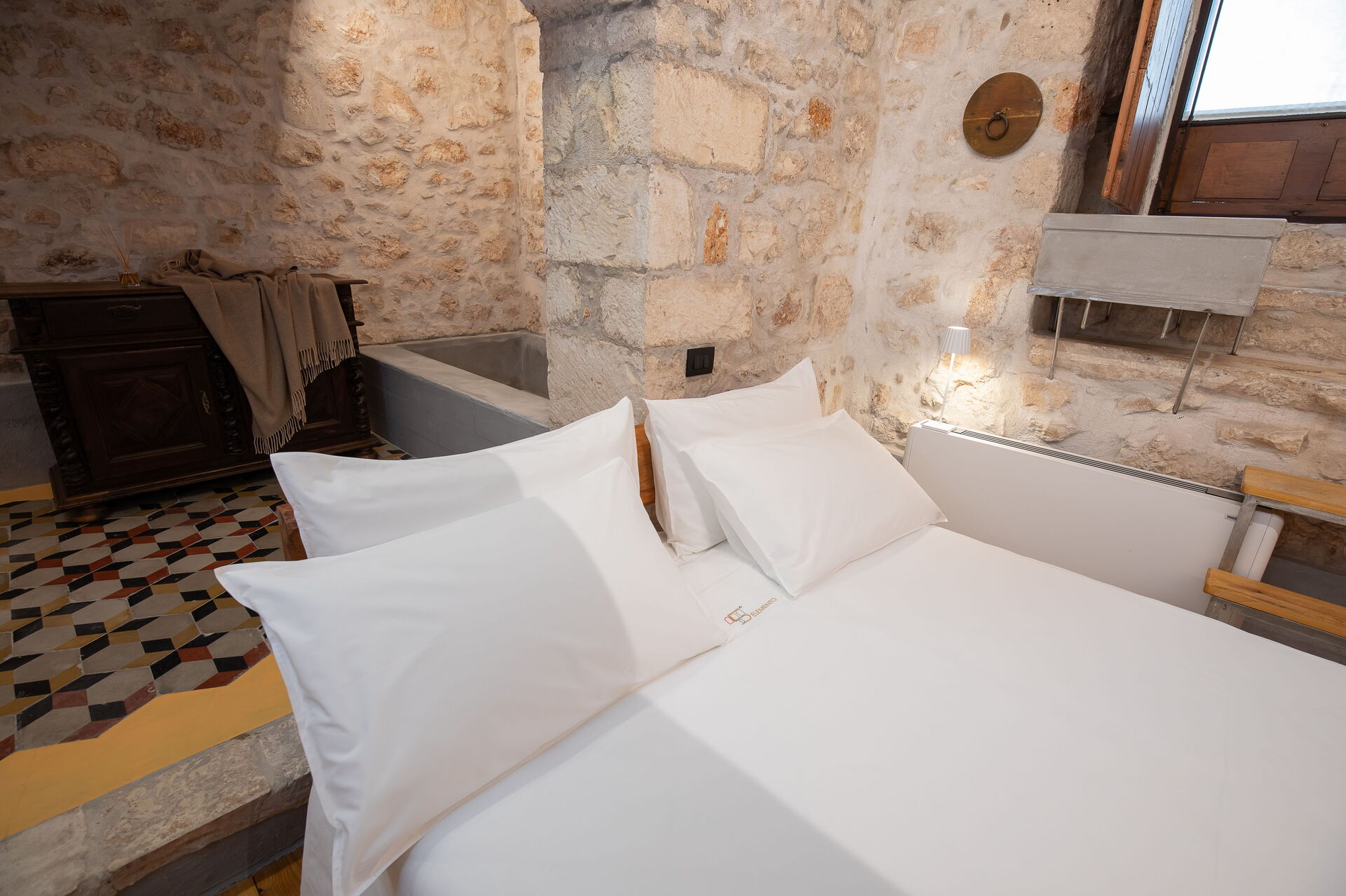 "The 5 Elemento Residence was born from the desire to restore the glory to Palazzo Ayroldi-Carissimo, symbol of the historic district"" Chianca de ora ""of the city of Ostuni. The monumental building of the sixteenth century, which belonged to the family whose name it carries, was partly taken over by Vincenzo Apruzzi in 2017. The entrepreneur, with over 50 years of experience in the construction sector, together with his team of professionals and operators, took up the challenge of bringing the ancient building back to life, abandoned for over forty years.