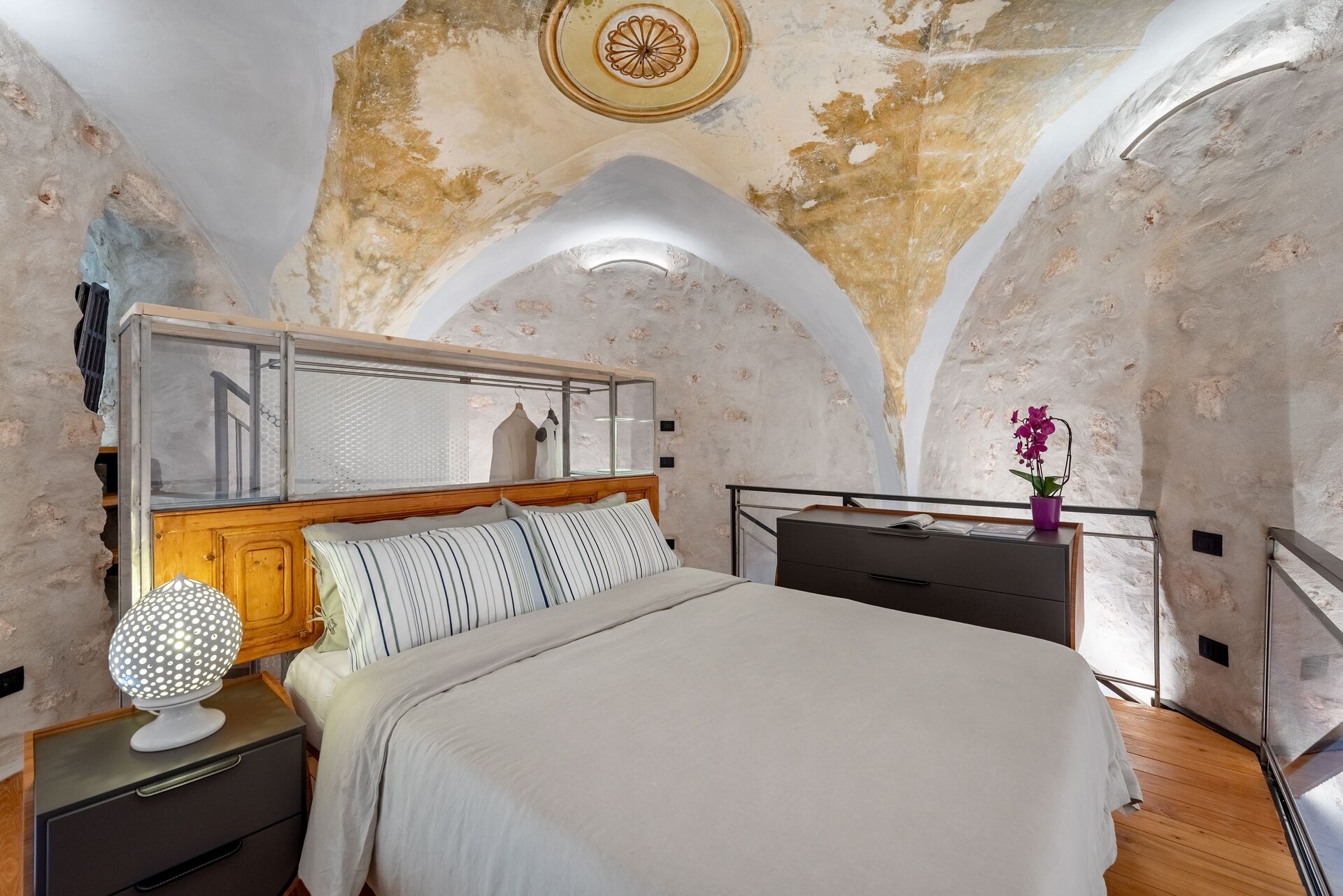 Accompanying the accommodation are common areas, such as a large reception hall, a multiservice master lounge, the ancient chapel, a relax area with bathtub and an internal courtyard. The presence of an internal lift makes it easy to use the spaces even for wheelchairs. "
